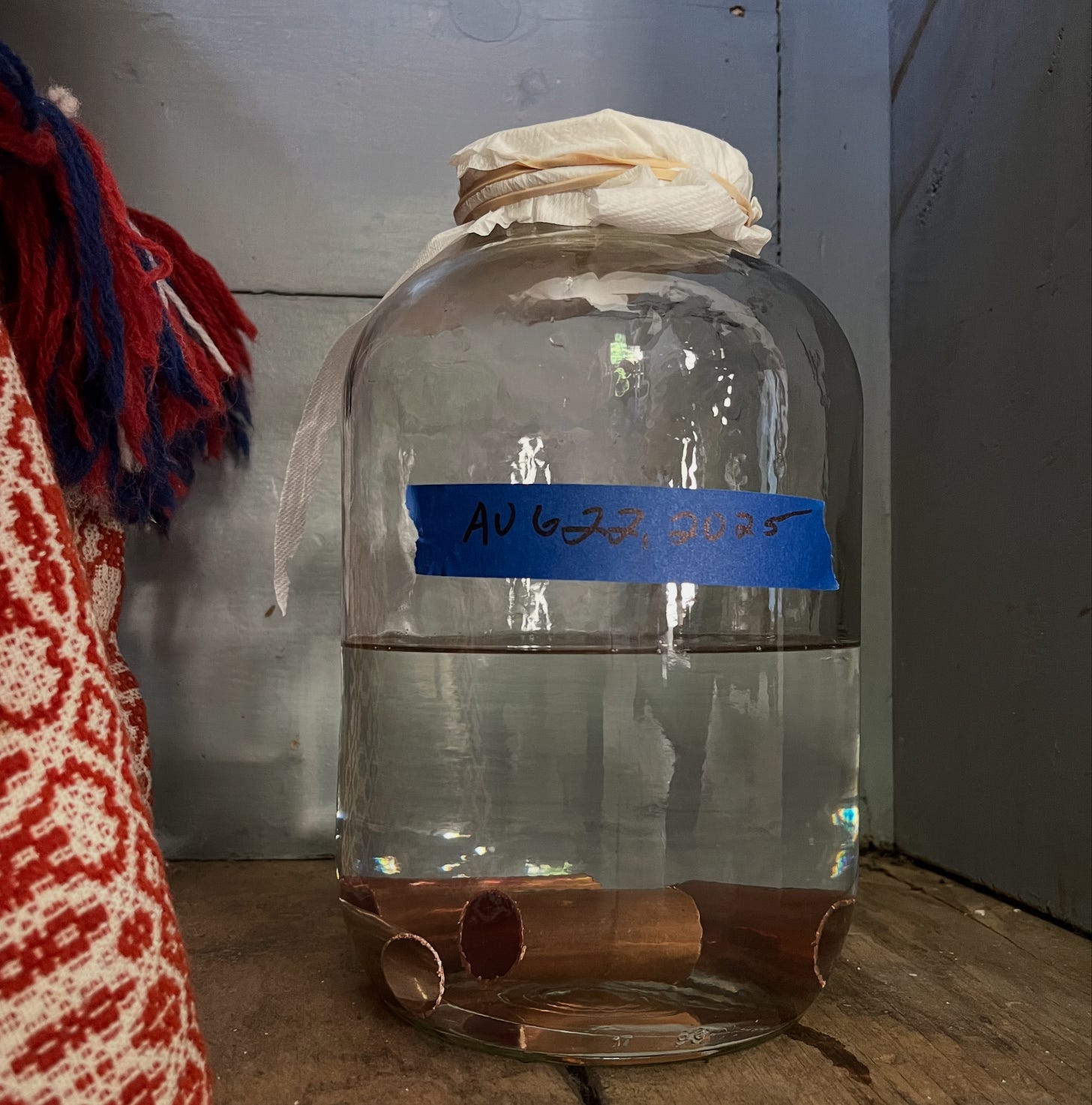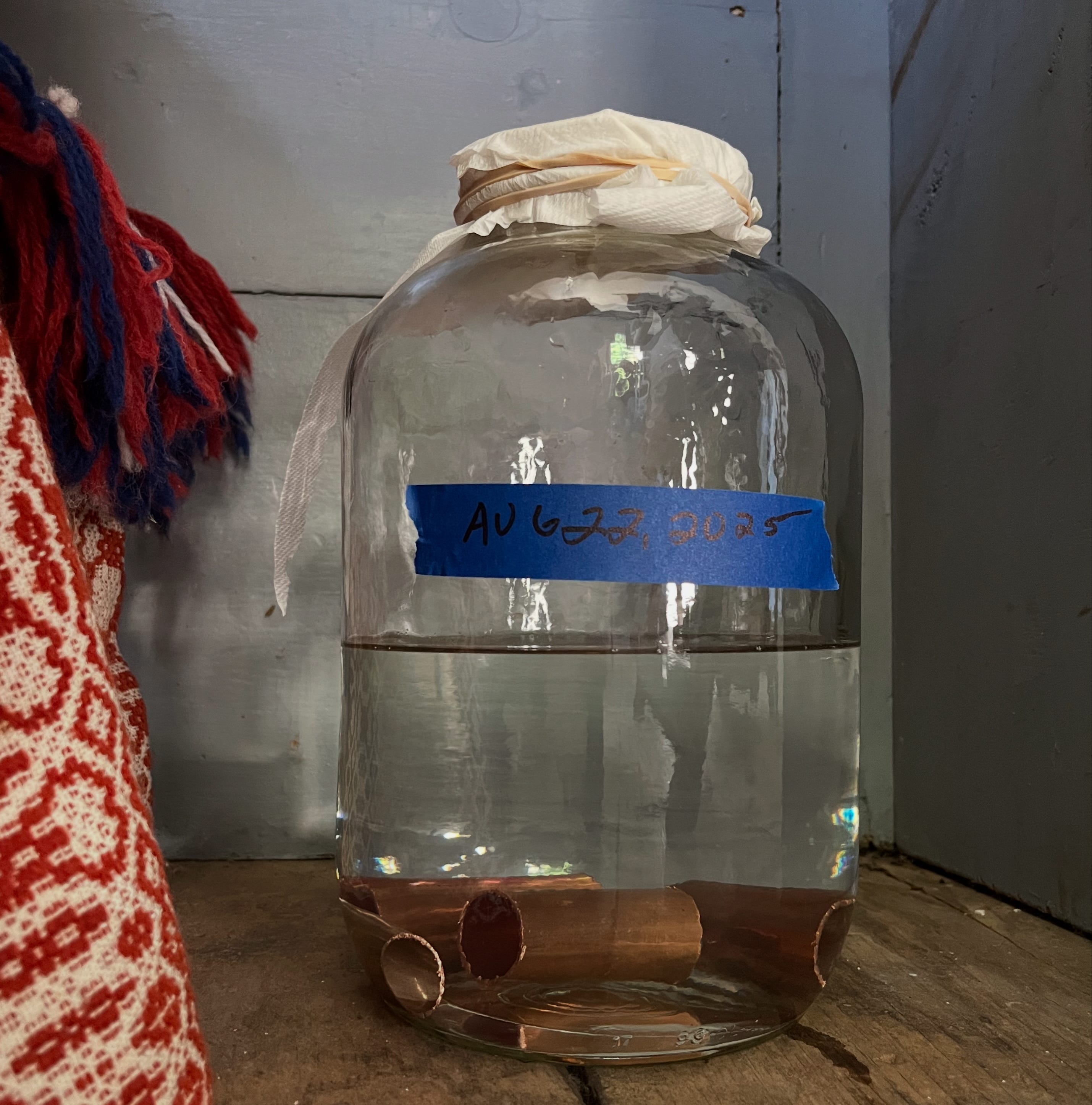 Garry, the Yoda to my Skywalker (in the ways of fiber and dye and weaving), suggested a new approach: copper and ammonia can make a mighty fine dye and requires minimal effort.